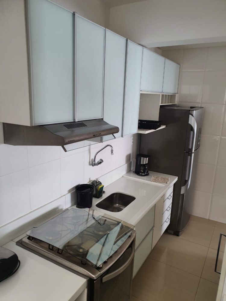 Localizado em andar intermediário, o apartamento conta com fino acabamento e está mobiliado, pronto para morar.
